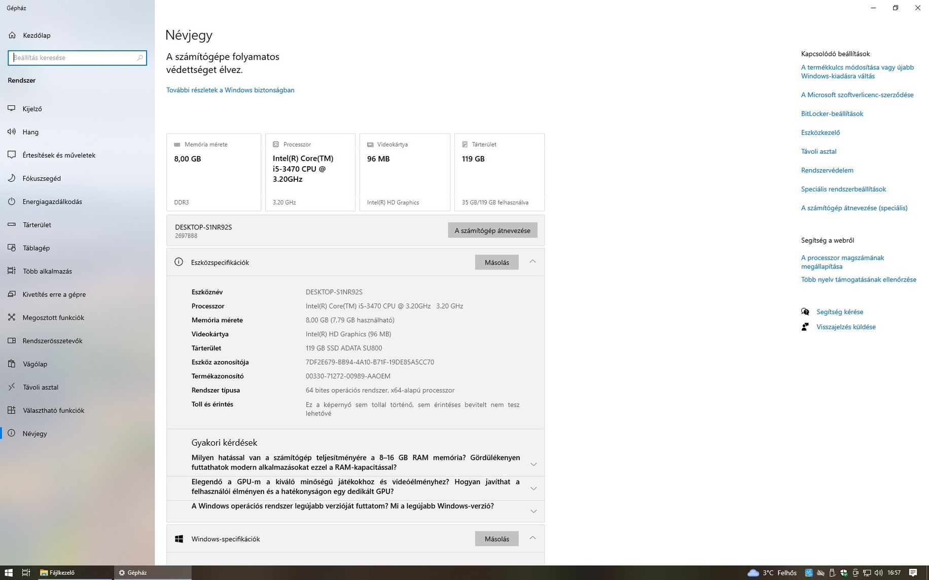 A gép használatra kész, telepítve, aktiválva, frissítve.