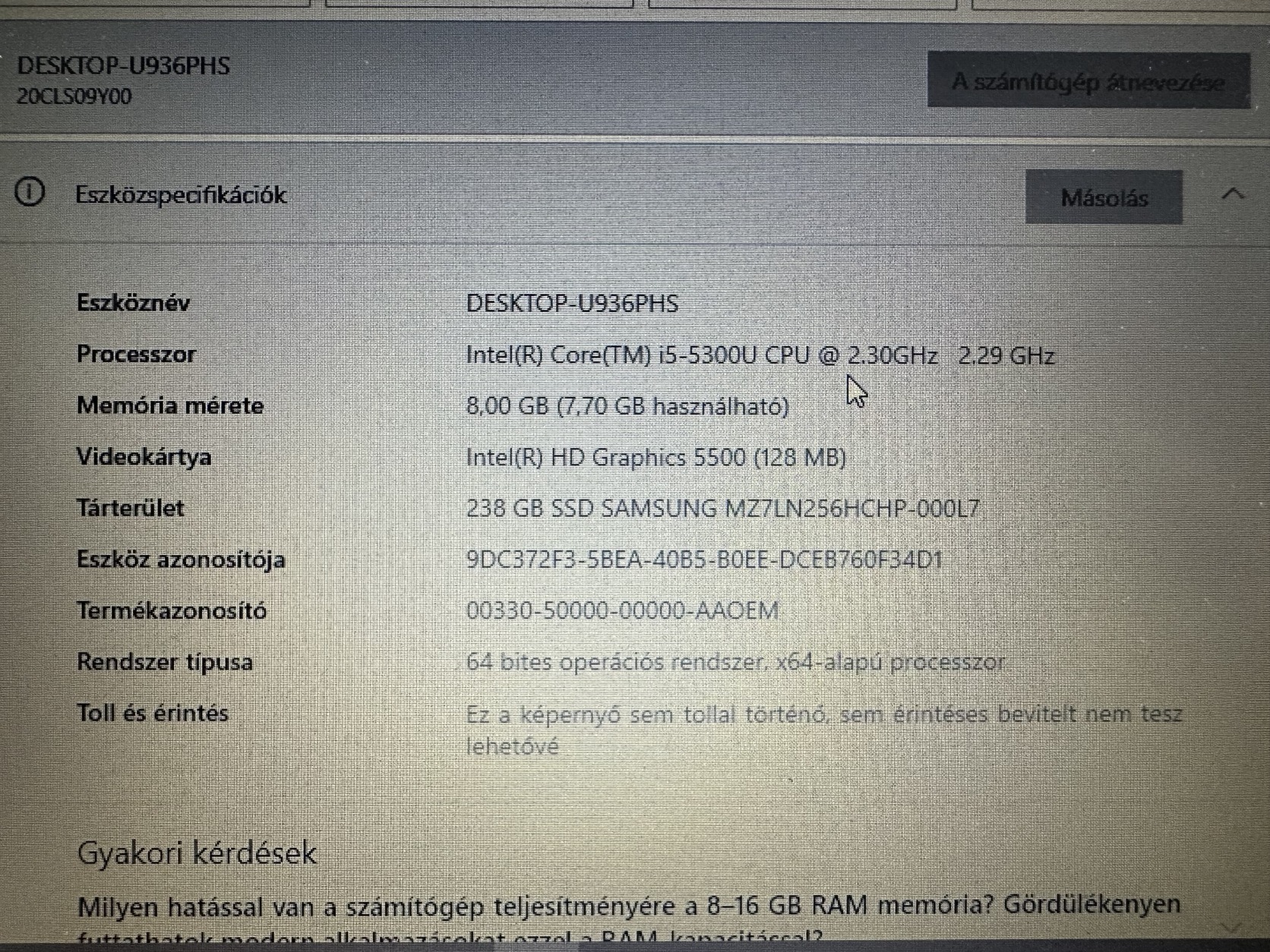 Intel Core i5-5300U, 2.3 GHz