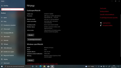 Grafikus vezérlő : AMD Radeon Vega 8 Graphics