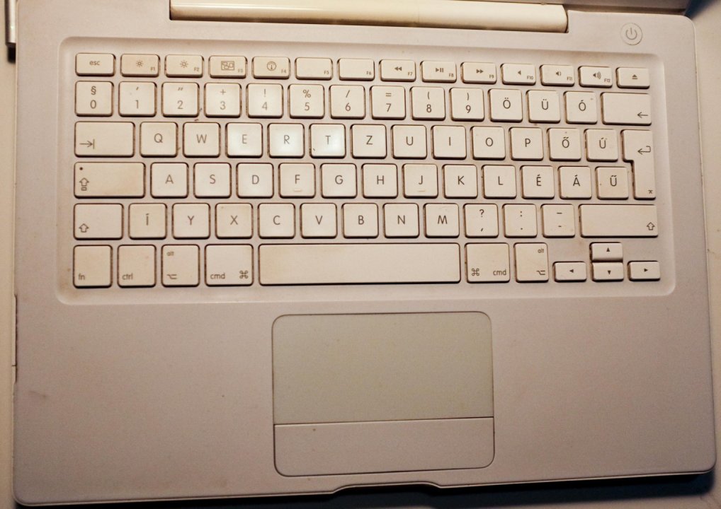 Eladó Macbook, 2008 early, 2,4 core2duo, 2gb ram, 320 as winyo, 10.7.5 LION fut rajta, de az akku nulla (benne van), alján repedés, palmrest egész szép csak egy helyen sérült, képeken jól látható minden. Magyar billentyűzettel, Mikrofon és kamera jó, de HANG csak fulhallgatóval vagy erősitőre kitéve van. Töltője randán javitott, szigszalagozva, de tölt.