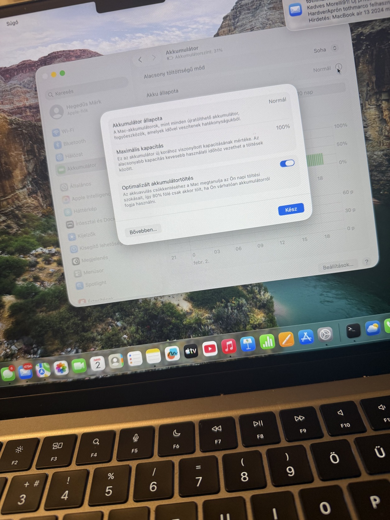 Akkumulátor állapot 100%