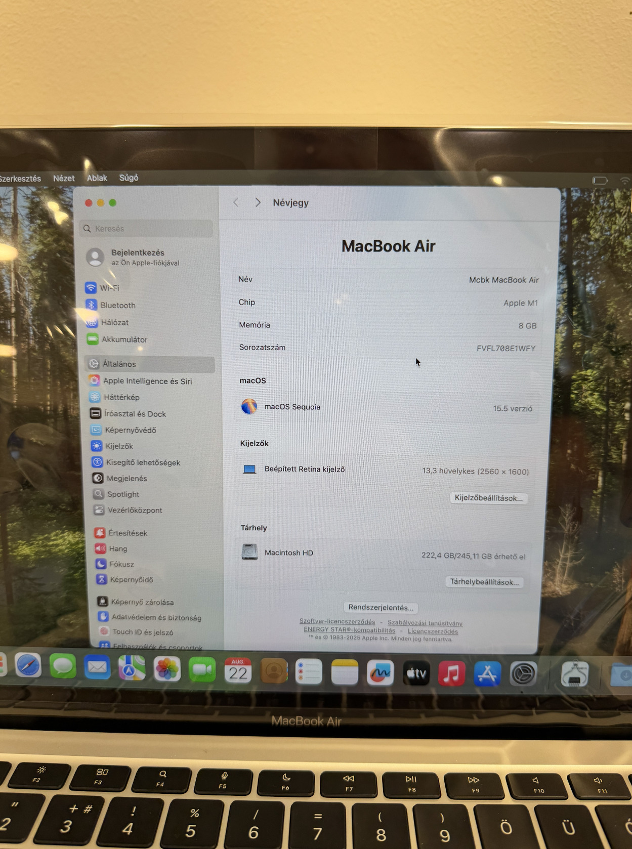 Eladó a képen látható használt Macbook AIR M1 2020-as gép.