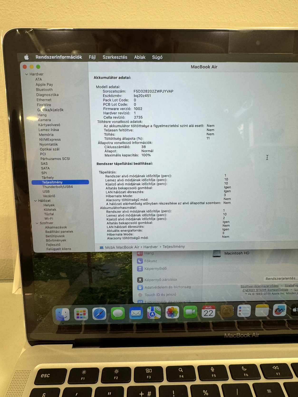 M1 / 8GB / 256 SSD / 38 ciklus 100%