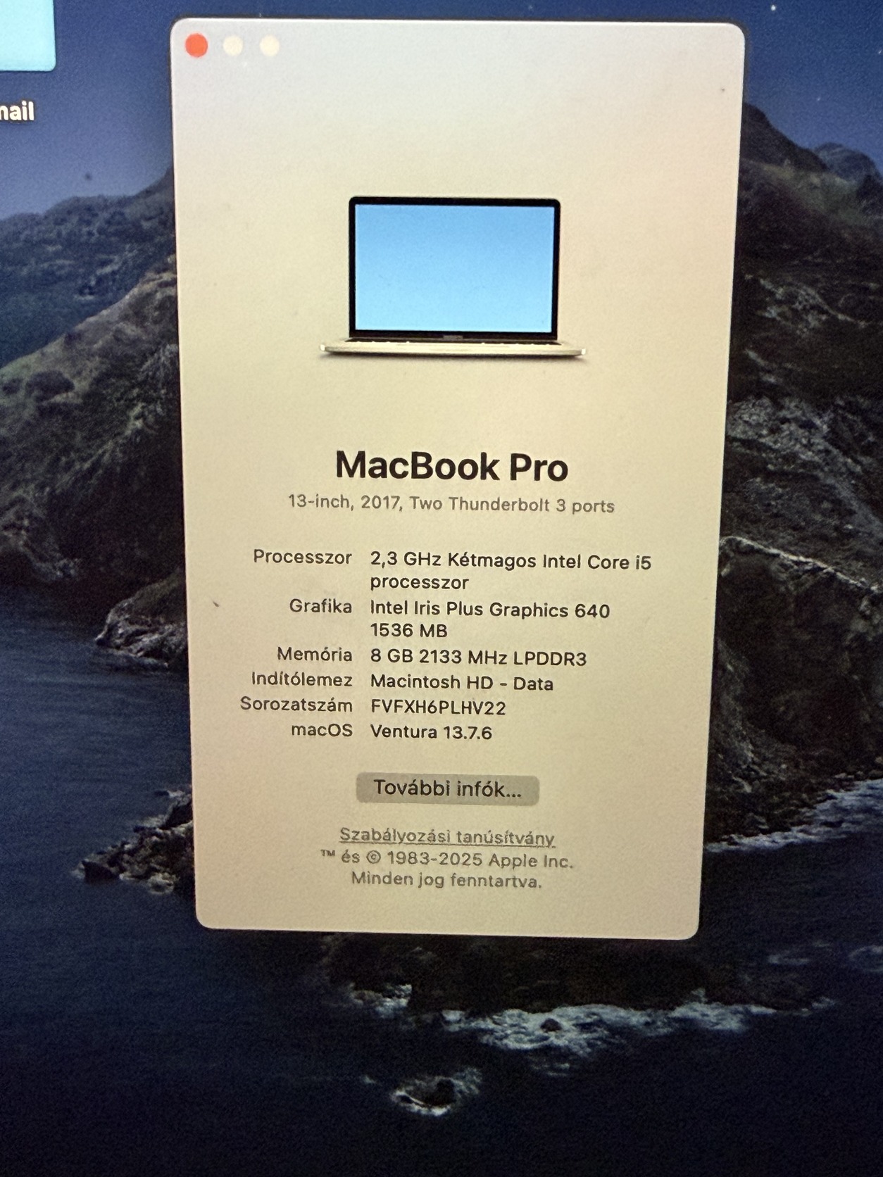 Eladó Macbook pro 2017 128gb 8gb ram i5
