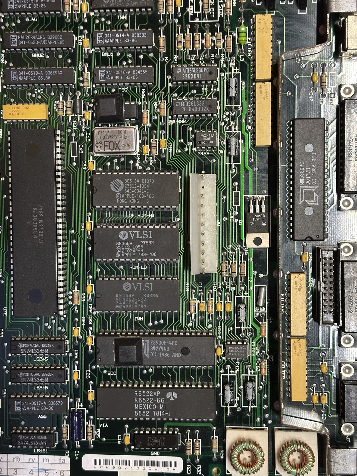 Eladó a címben és a képeken látható eredeti Apple Macintosh Plus alaplap. Az elektrolit kondenzátorok cserélve lettek, ez alól kivételt képez a C14-es kondenzátor, az még az eredeti. Ilyen fizikai méretű axiális kondenzátorokat nem lehetett már itthon kapni, így radiális kondenzátorok lettek beültetve. Működését tekintve ez semmit nem befolyásol. Tökéletesen működött, mikor elraktam. Az alaplapot 2 éve nyugalmaztam, azóta nem volt beüzemelve. Garancia egy 39-40 éves alaplapra most nincs. Csere is érdekel, lásd többi hirdetésem.