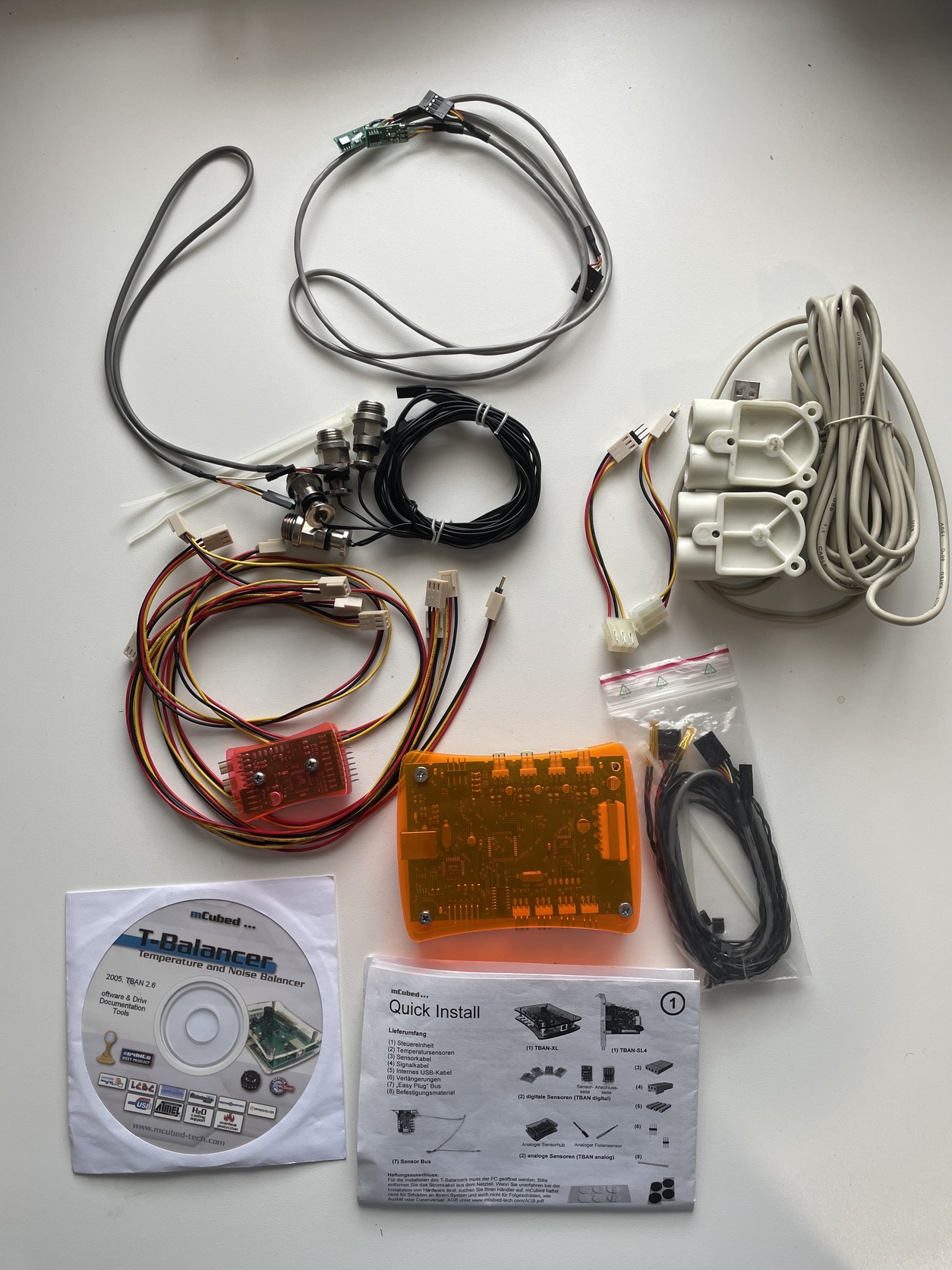 Elkelt mCubed T-Balancer a képen látható alkatrészekkel.