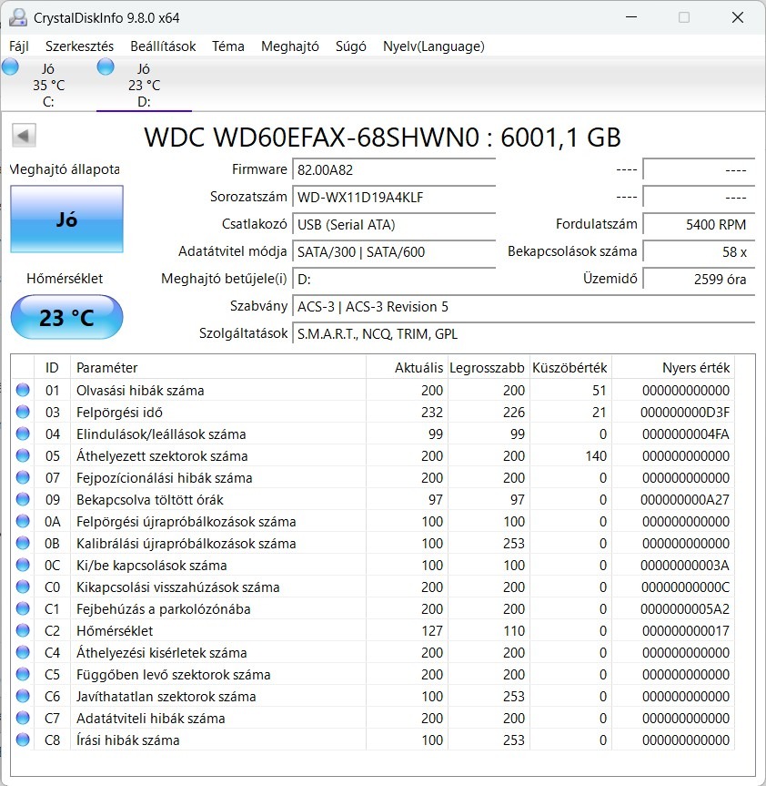 Kérésre elküldöm a CrystalDiskInfo-t az érintett lemezről