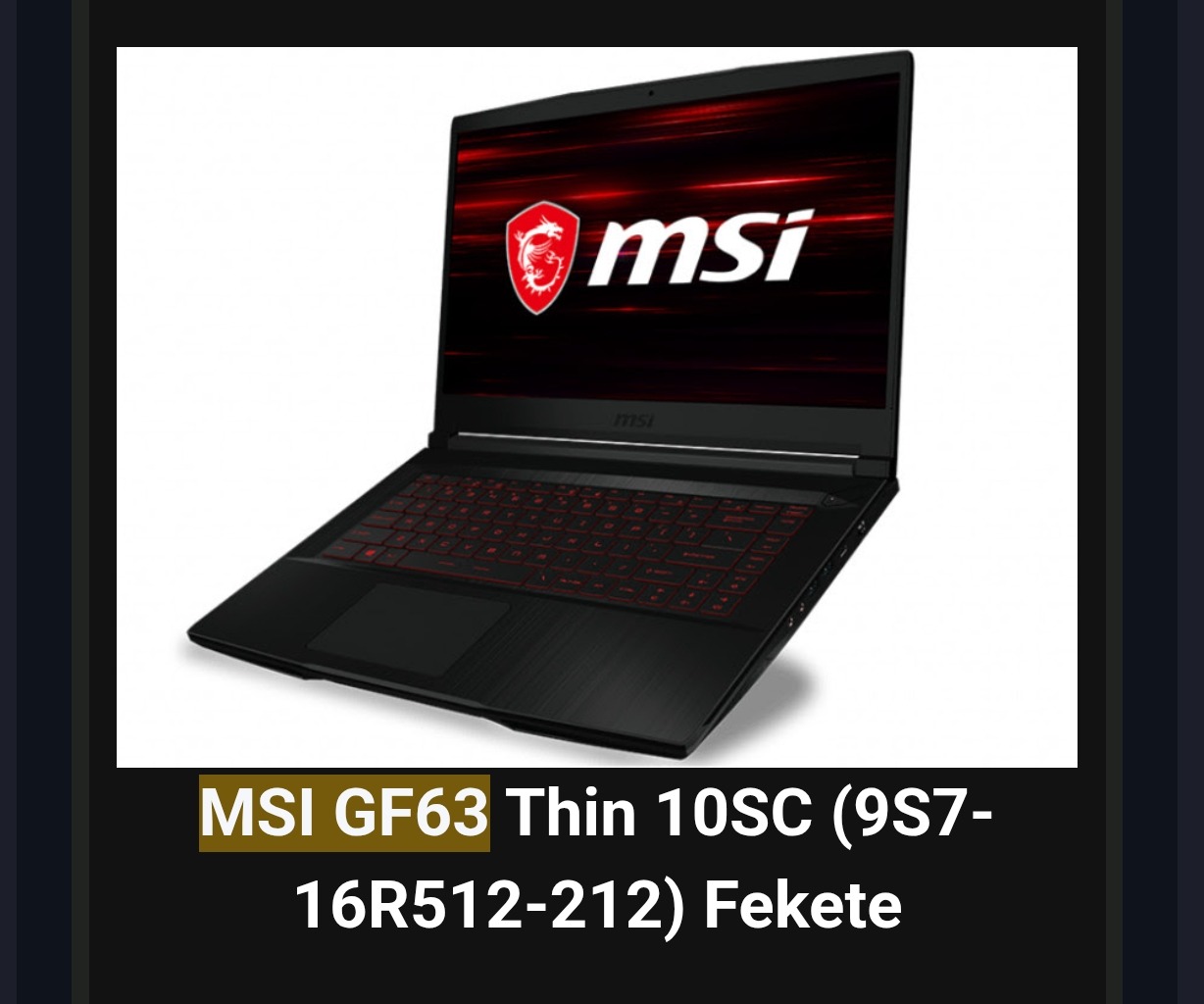 Eladó MSI GF63 10SC