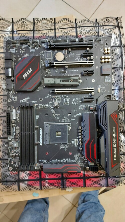 Msi X370 Gaming Pro , 3 nap garancia ! 10.000 ft. a prcival együtt gondoltam !! Proci: 2700X + a lap = 65.000ft + szállítás .A lap a képen látható, az egyik pöcök letörve az egyik PCI-E X16 pirossal karikázva a pöcök hiánya. én így használtam 1 évig, semmit nem befolyásol !! GTX1080 ment benne ! Link a lapról: katt
