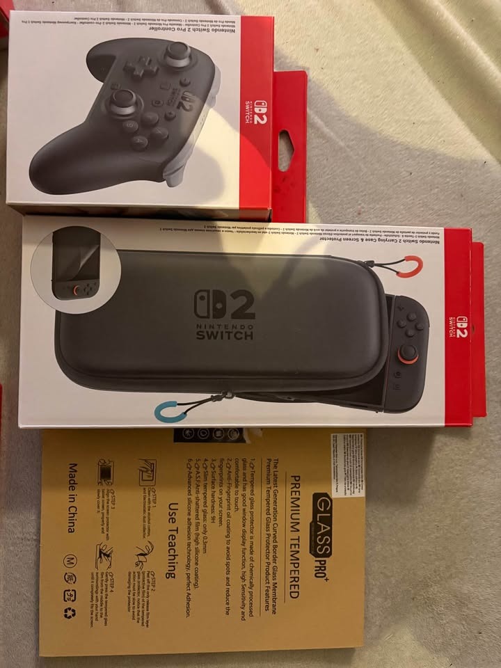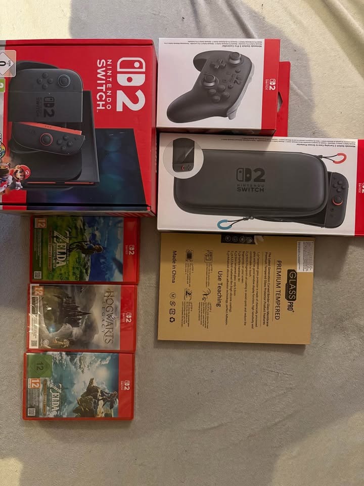 Eladó Nintendo Switch 2, 3 játékkal (2 bontatlan), Pro Controllerrel, tokkal, üvegfóliával