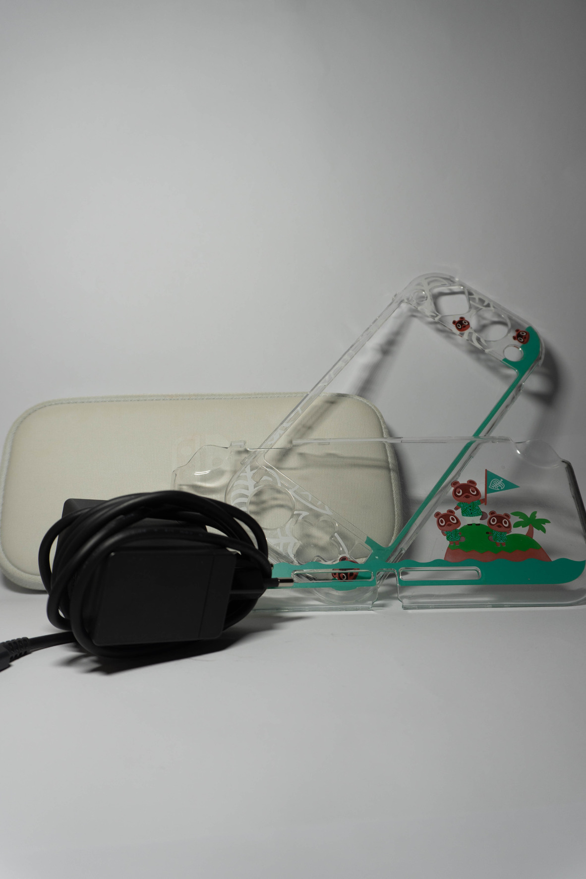 A csomag tartalmazza a konzolt, egy nintendos hordozó táskát, 128gb ssd-t, eredeti nintendo töltőjét és egy annimal crossing os kemény tokot.