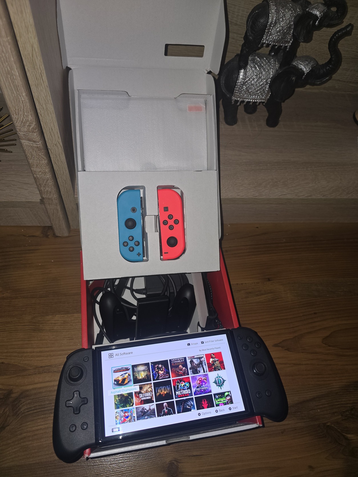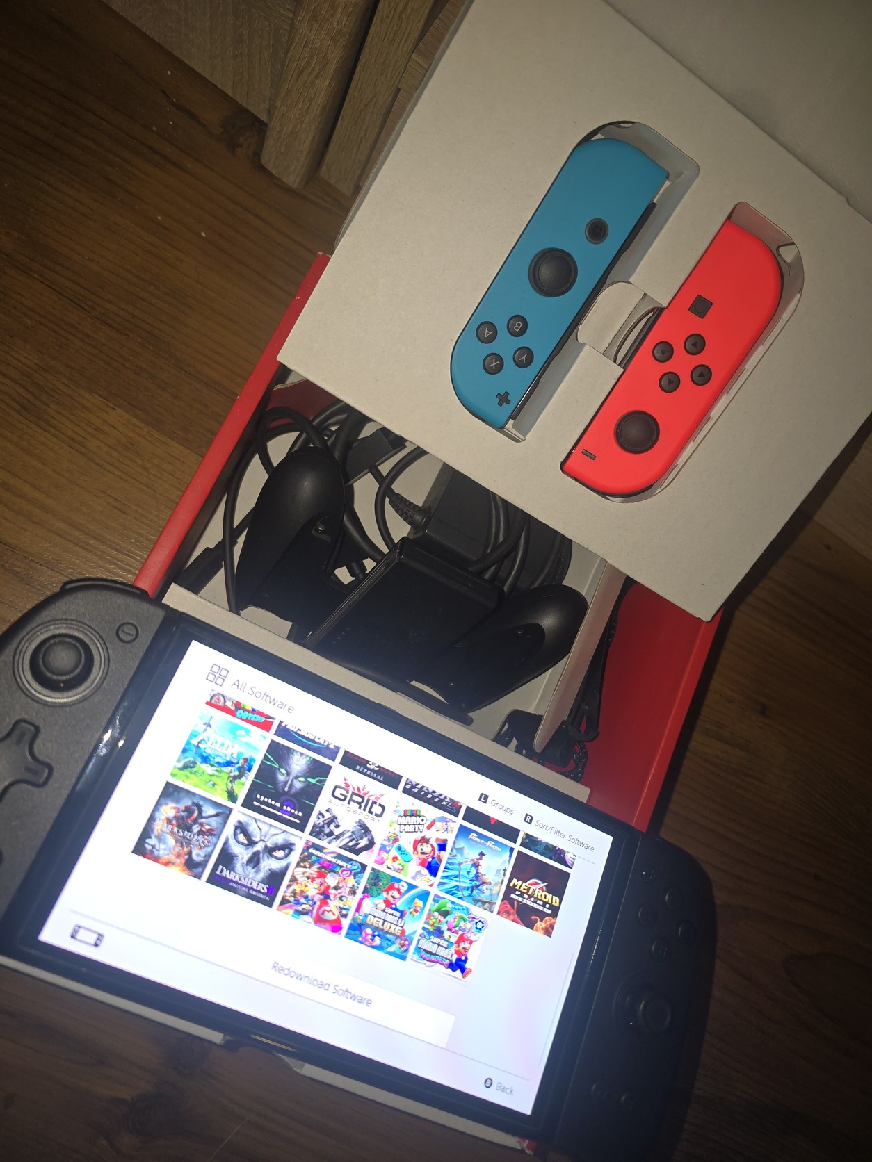 Rengeteg játék van rajta. Van köztük ami magyarosítva van. A gyári tartozékon kívül tartozik hozzá egy másik joycon pár ami sokkal ergonomikusabb valamint hall effect analóg karokkal van ellátva. Így a driftelés kizárt. Emellett van még egy plusz üvegfólia és egy hordozó tok is.