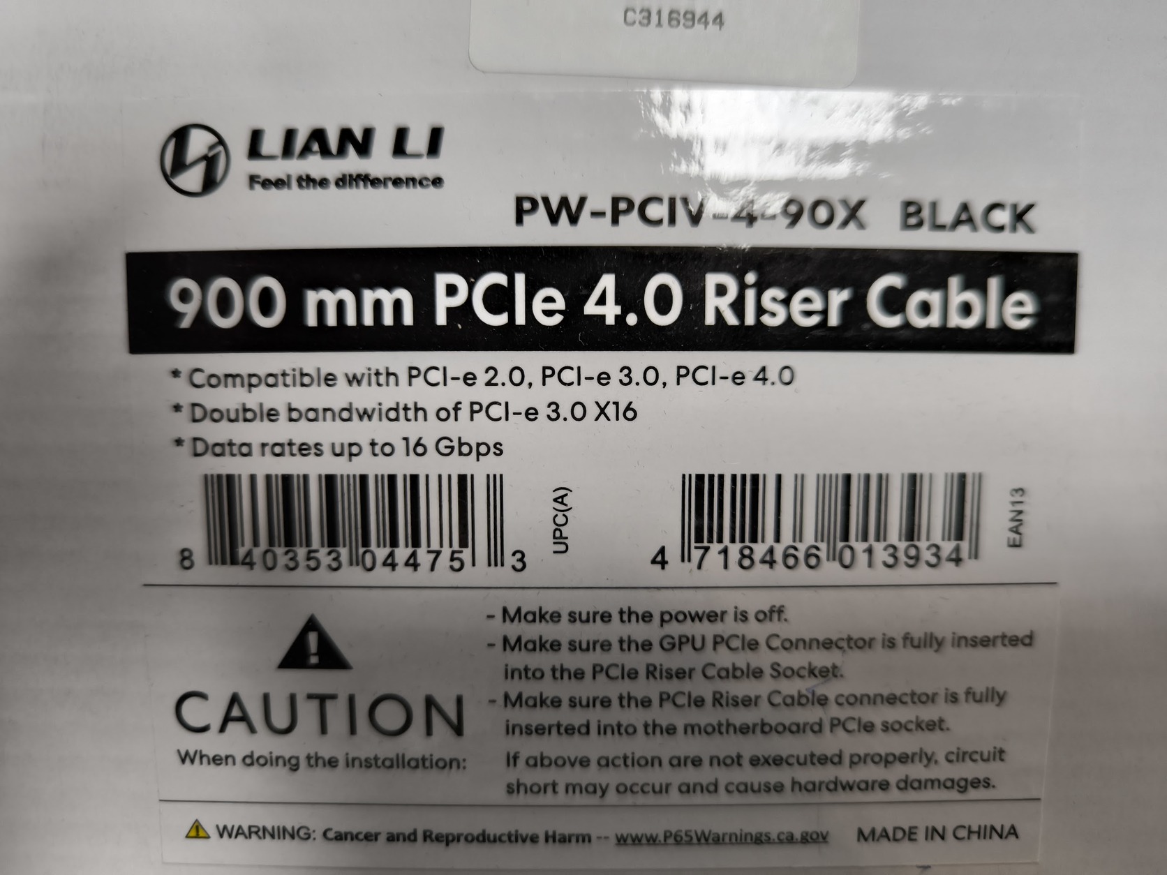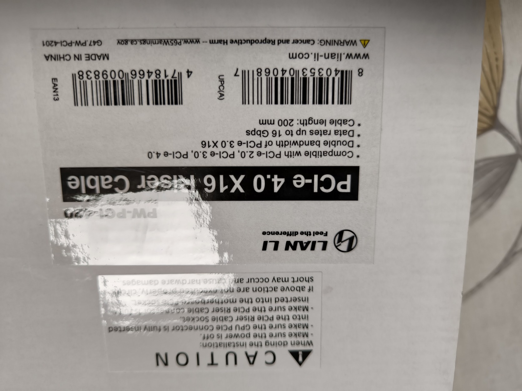 Lian Li 900mm 4.0 Riser kábel 90 fokos (Fekete, fehér)- 10000FT