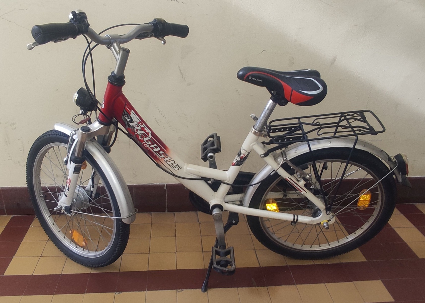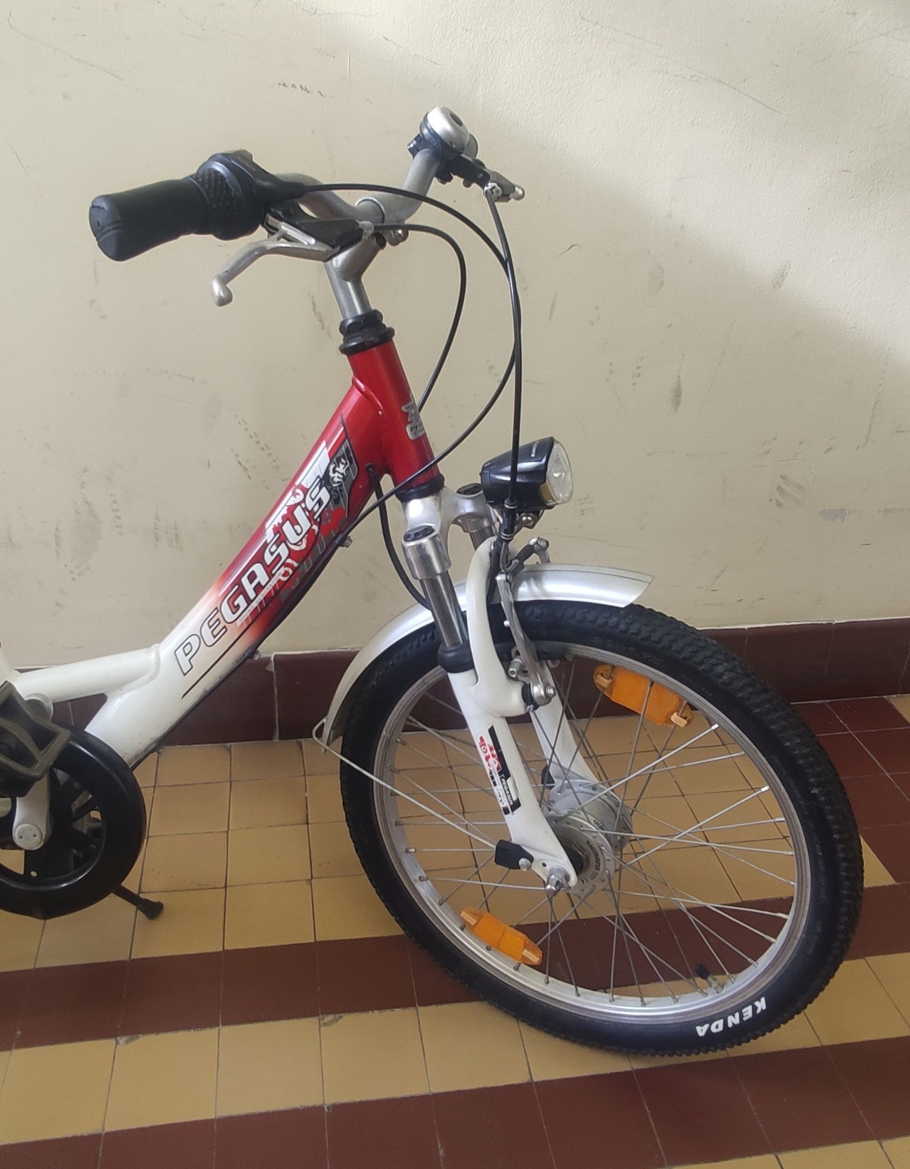 Eladó Pegasus Avanti 20'' német prémium unisex gyerekkerékpár, 3 fokozatú Shimano Nexus agyváltóval, teleszkópos villával, dinamós világítással, csomagtartóval felszerelve, a képek szerinti jó állapotban.