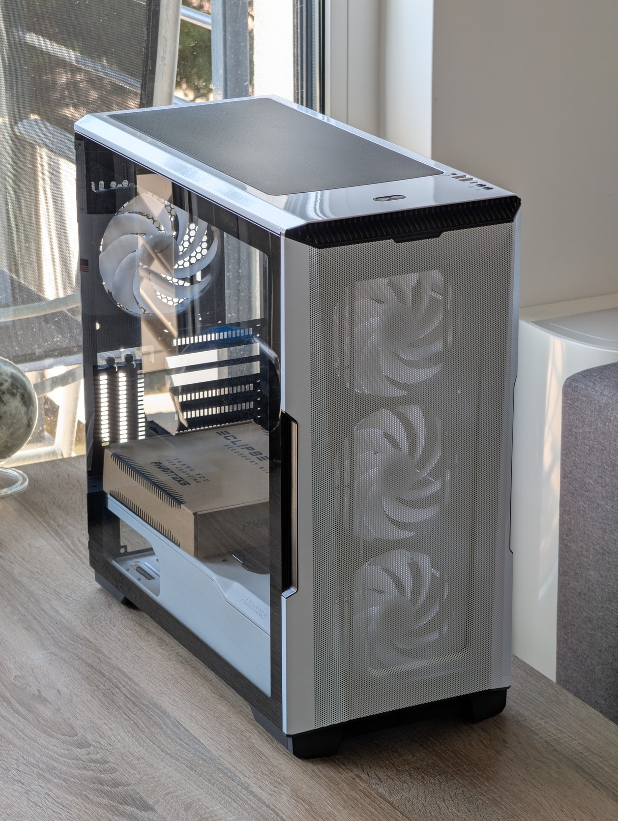 Eladó egy újszerű, hibátlan Phanteks Eclipse P500A gépház. A gyári 3db RGB ventin felül +1 ventilátorral adom, ami azonos típusú.