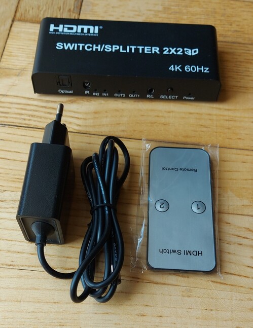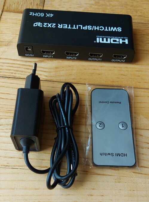HDMI Switch - 2 HDMI eszköz osztozik 2 HDMI kimeneten (2× HDMI out és 2× HDMI in). Átkapcsolás IR távirányítóval vagy az eszközön lévő gombbal. Hibátlanul működik.