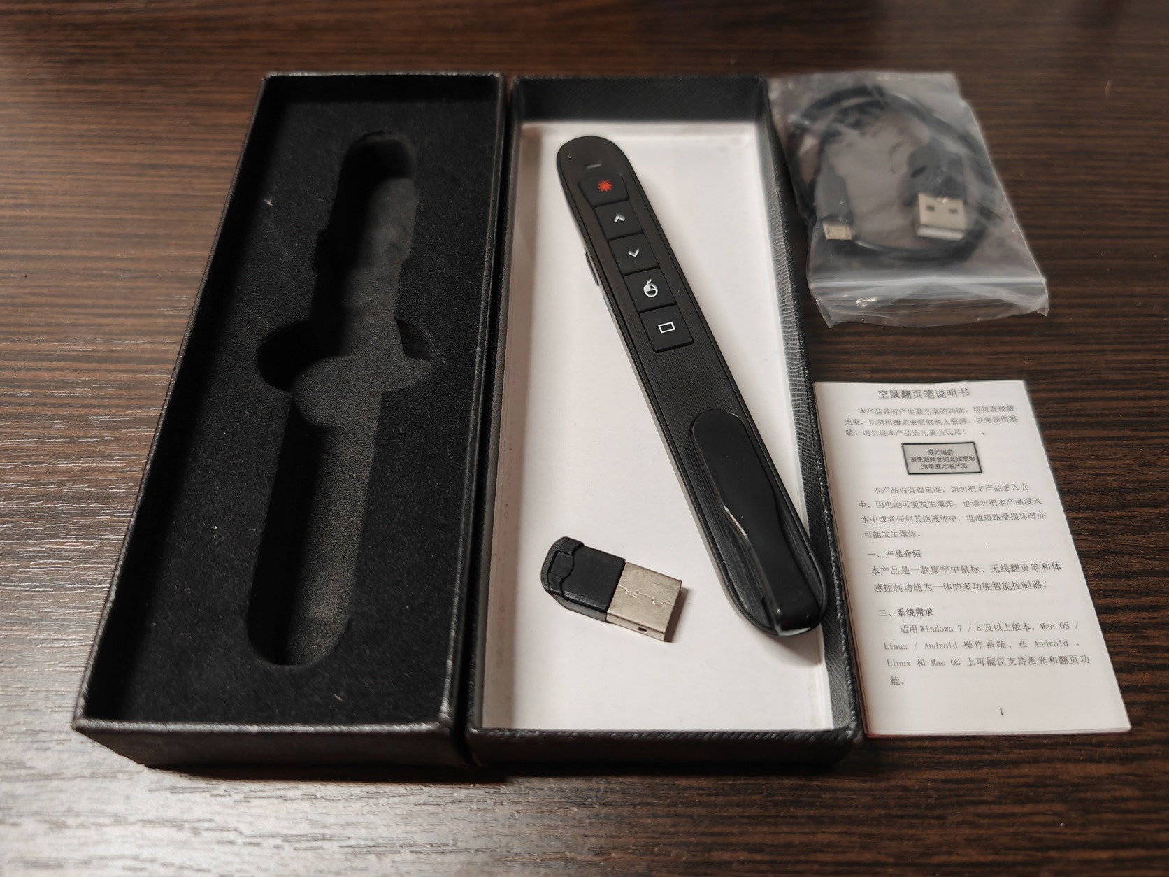 Az USB-s vevő egység számítógéphez csatlakoztatása után azonnal használható. A vevőegység mágnesesen csatlakozik a presenter hátuljához, így könnyen elrejthető benne/tárolható amíg nincs használva. Az eszköz a mellékelt micro-USB kábellel tölthető. Van léptető, hangerőszabályzó, laserpointer, valamint a beépített gyroscope által egérvezérlő funkciója is (tulajdonképpen az egér az eszköz levegőben történő mozgását követi le).