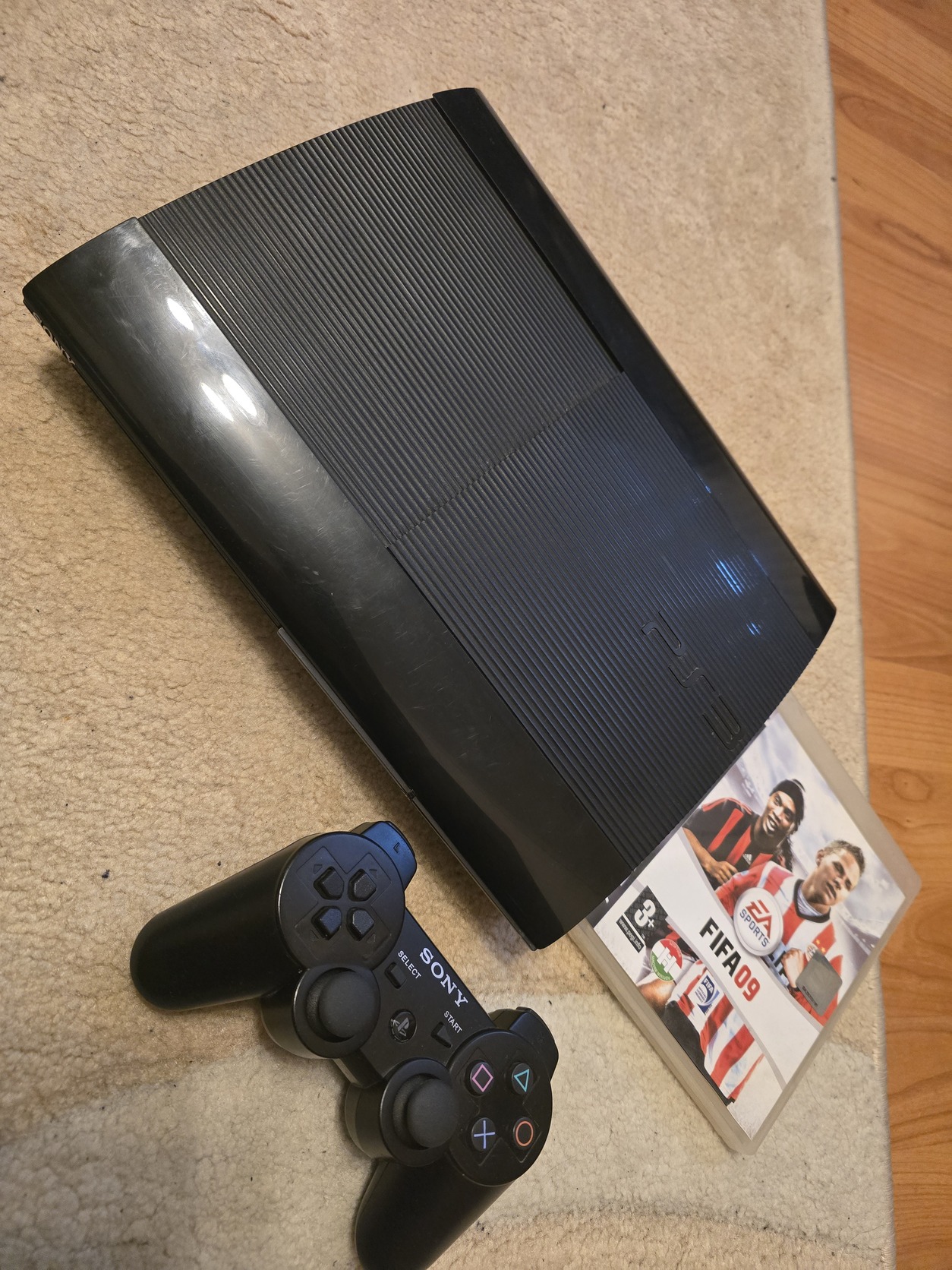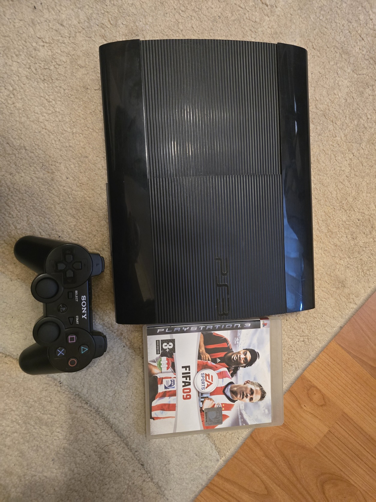 Eladó a képeken látható jó állapotú ps3 super slim 500gb konzol 1 db kontrollerrel 1db játékkal valamint a hozzá tartozó kábelekkel. (Hdmi, tápkábel, töltőkábel)