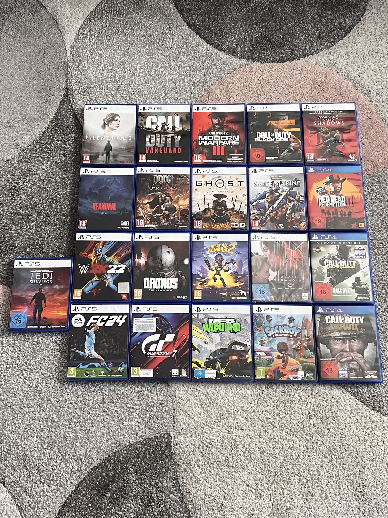 Ps4:Cod Infinite Warfare:4.000ft,Cod WW2:6.000ft,Red dead 2: 6.000ft.Ps5:2K 22: 4.000ft,FC24: 4.000ft,Destroy all Humans 2: 5.000ft,Jedi Survivor:6.000ft,NFS Unbound:6.000ft,Cod Vanguard:9.000ft,Modern warfare 3: 10.000ft,Sackboy:10.000ft,Black Ops 6: 11.000ft,Assassin’s Creed Shadows:12.000ft,Granturismo 7: 12.000ft,Reanimal:12.000ft,Space Marine 2: 12.000ft,Cronos New Dawn:13.000ft,Clair Obscure Expedition 33: 13.000ft,Silent Hill 2 Remake:13.000ft,Death Stranding 2: 13.000ft(bontatlan új)Doom Dark Age:14.000ft,Ghost of Yotei:19.000ft.Fix árak.Budapesten személyesen vagy Foxpost(1.700ft plusz)