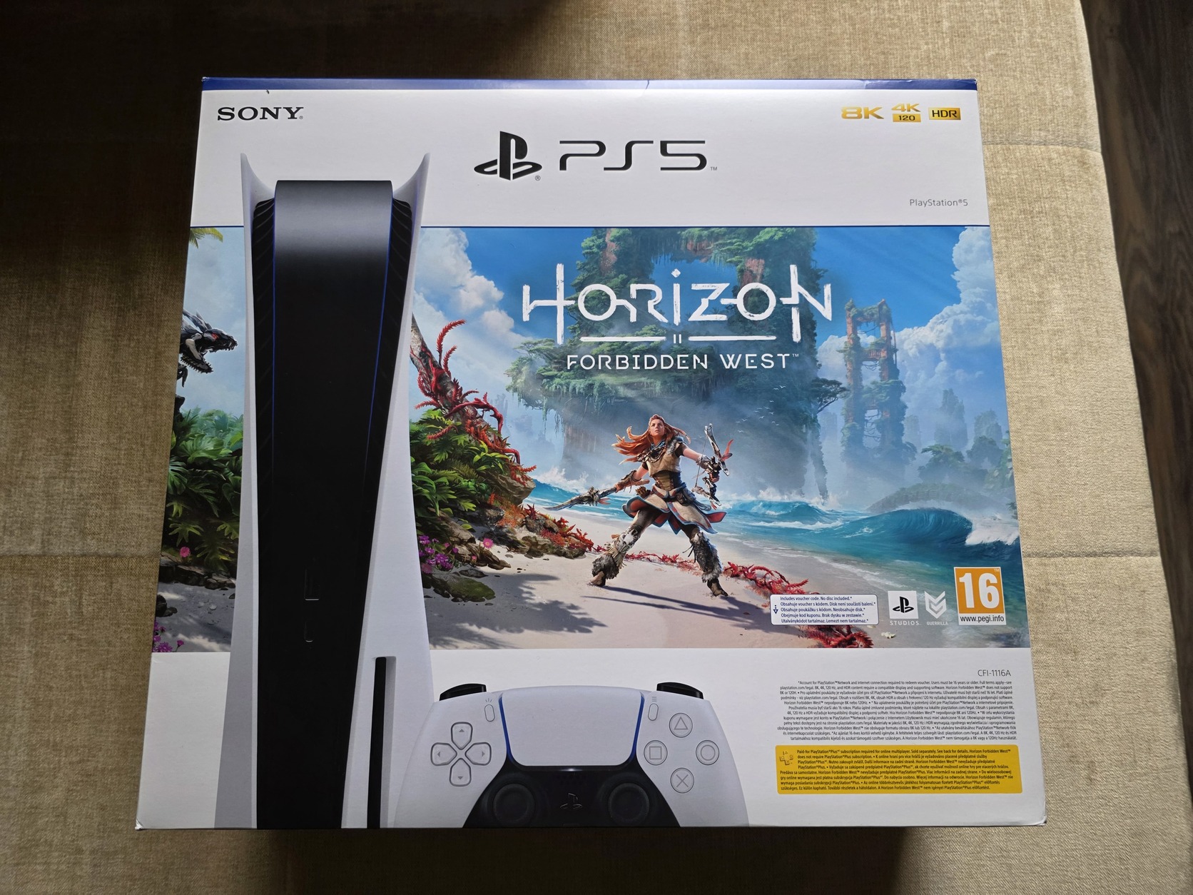 A konzol magában, 1 kontrollerrel + a hozzá tartozó Horizon Forbidden West játékkal 120.000HUF-ért vihető.