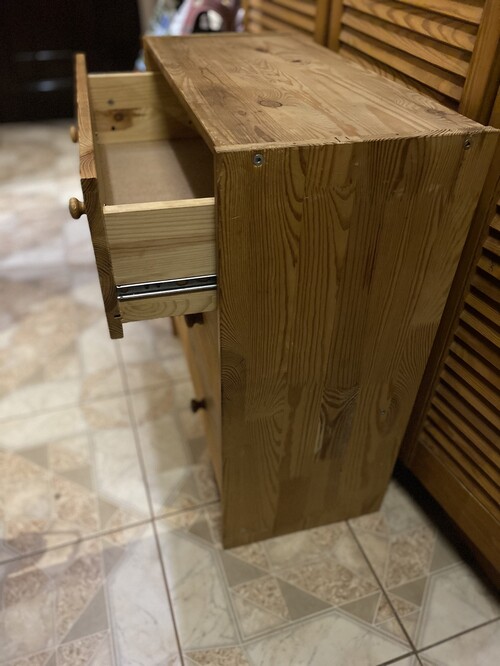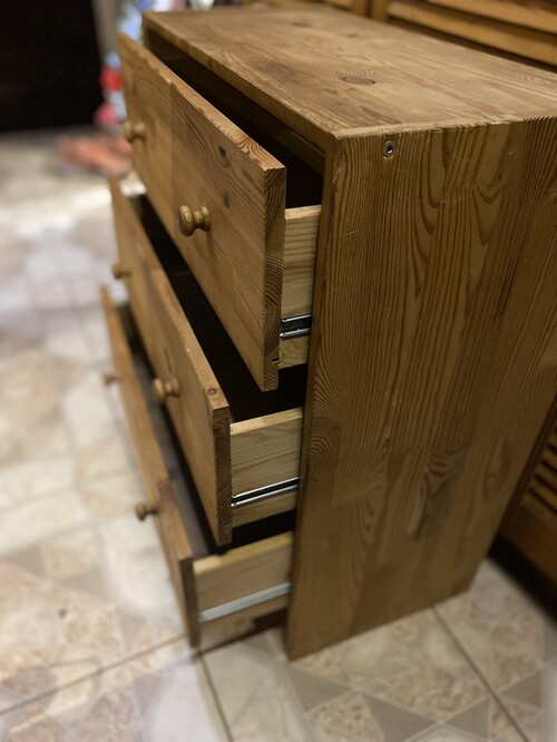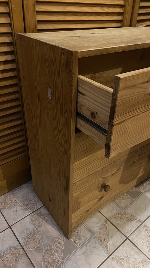 Eladó a képeken látható IKEA fenyő komód. Kezeletlen fa felületű, új golyós sínnel.