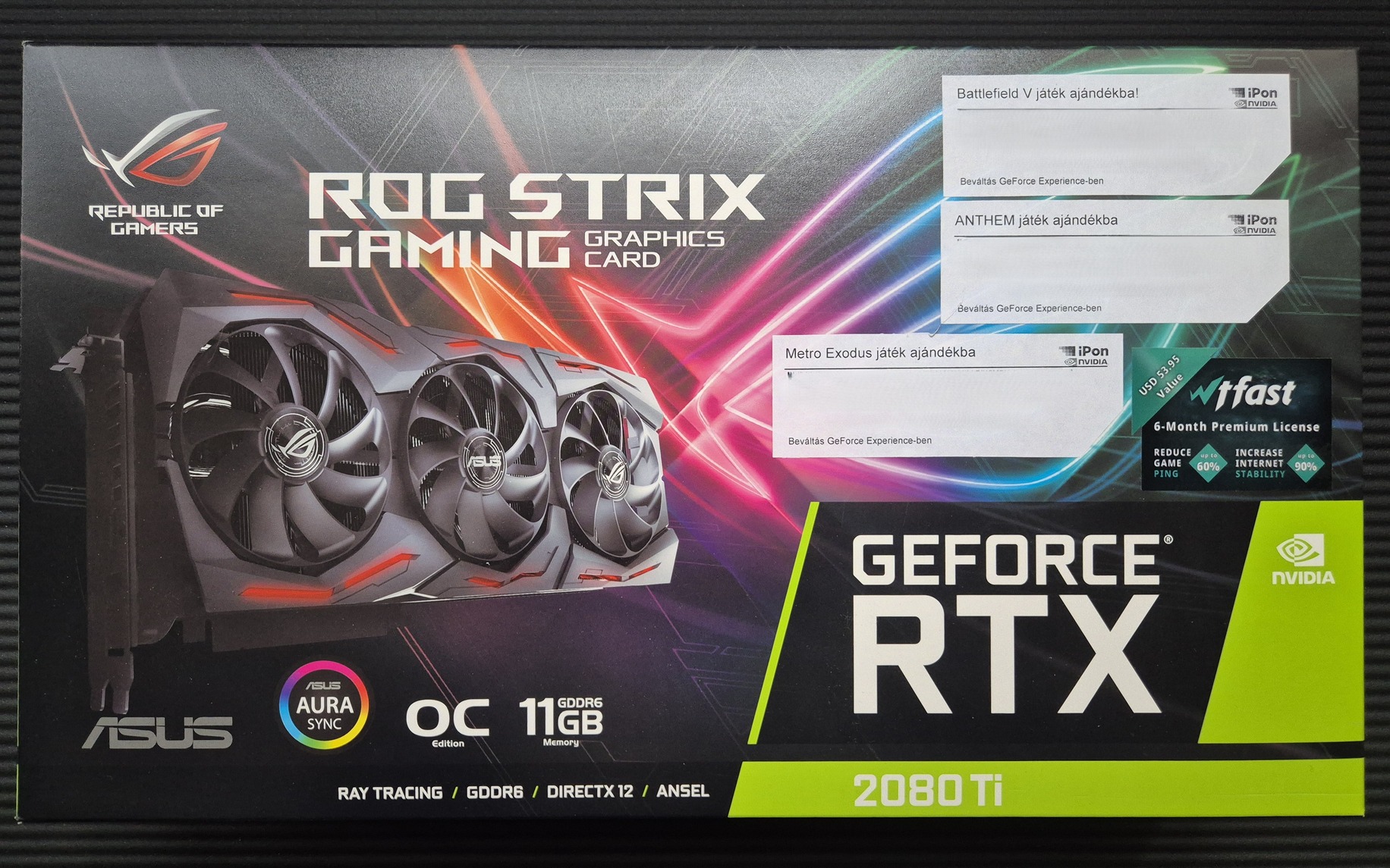 Eladó egy 2019-ben iPonról vásárolt ASUS ROG STRIX GeForce RTX 2080 Ti 11GB GDDR6 OC GAMING PCIE videókártya. Új gép miatt cseréltem le.