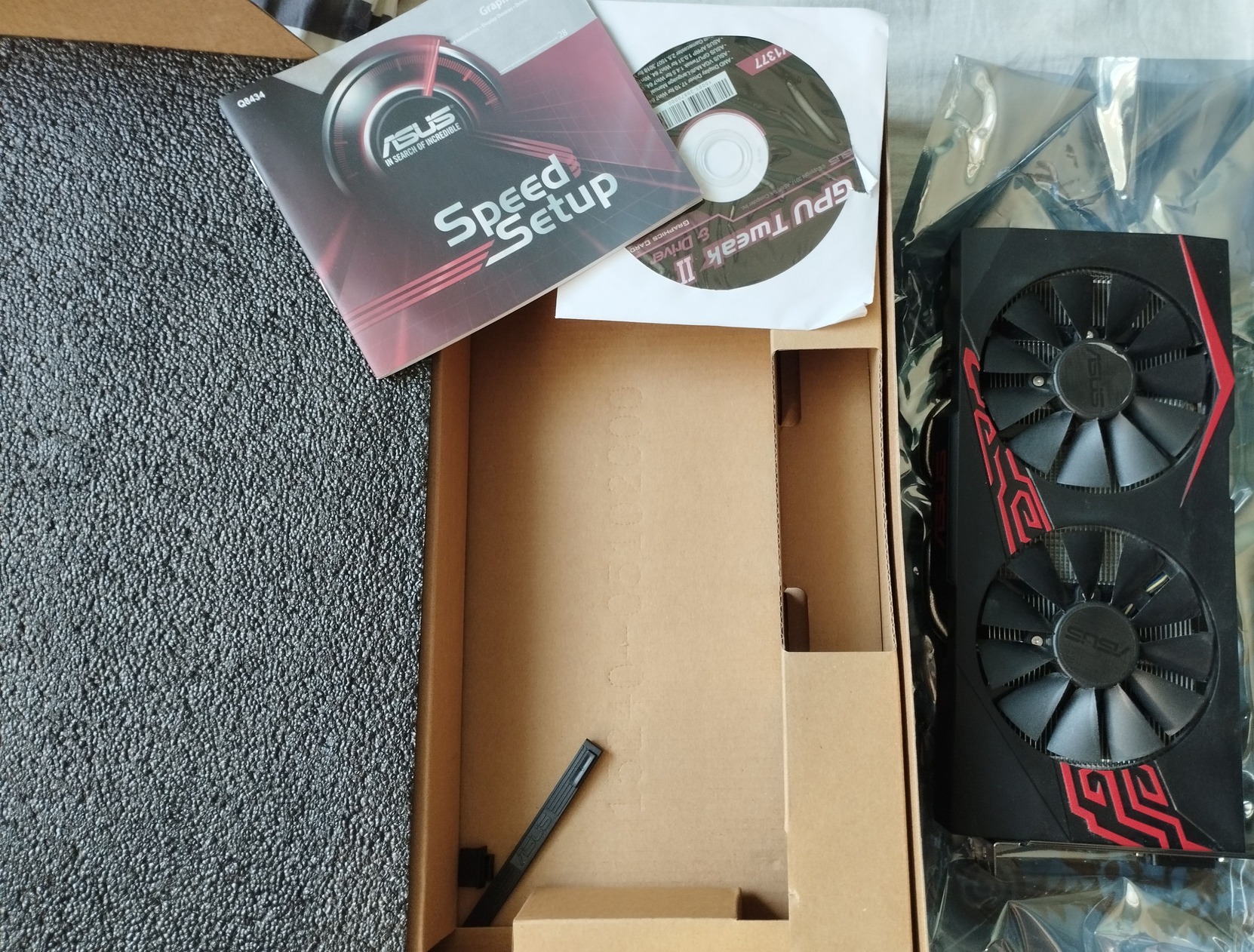 Eredeti doboz , esd zacsi, manual, cd , hdmi, dvi , pci-x csatlakozó védők rajta vannak.