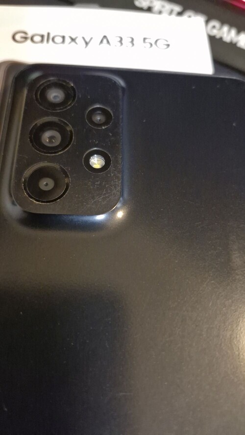Hátlapján a kamera sziget sarkán és a jobb alsó sarkán kopás látható, ahol a telefon feltámaszkodik asztalra helyezve.