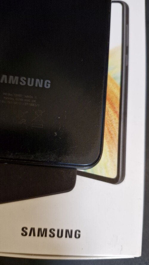Kijelzőjén üvegfólia van, de van alatta egy karc, ami csak kikapcsolt képernyőnél látszik, próbáltam fotózni.