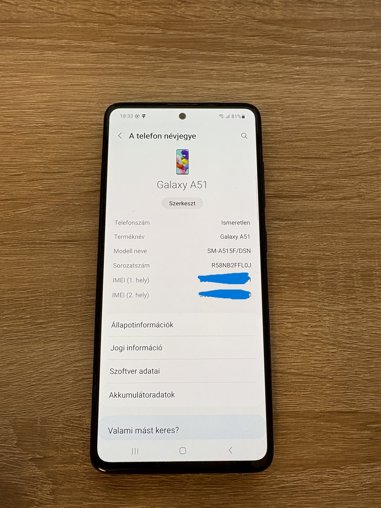 Eladó Samsung A51 128 GB használt, normál állapotú dual simes telefon.
