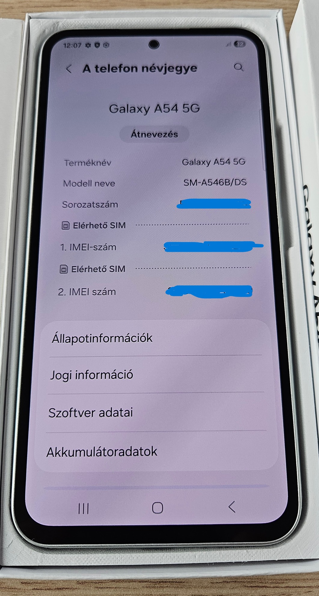 Eladó Samsung A54 5G fehér szín / 8gb / 128gb / patika állapotú, karcmentes - dobozában
