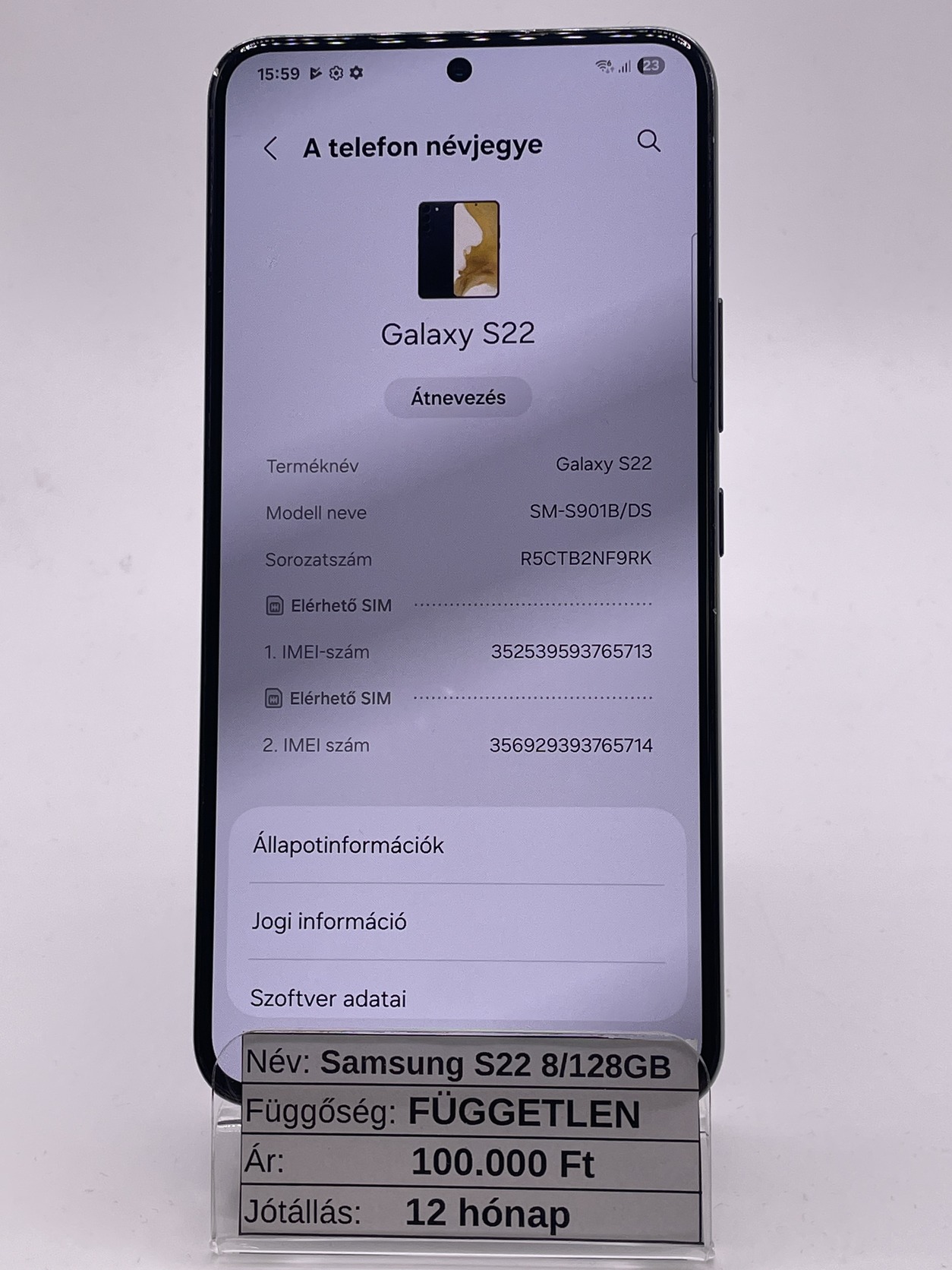 Eladó Samsung Galaxy S22 8/128GB / 12 hó jótállás