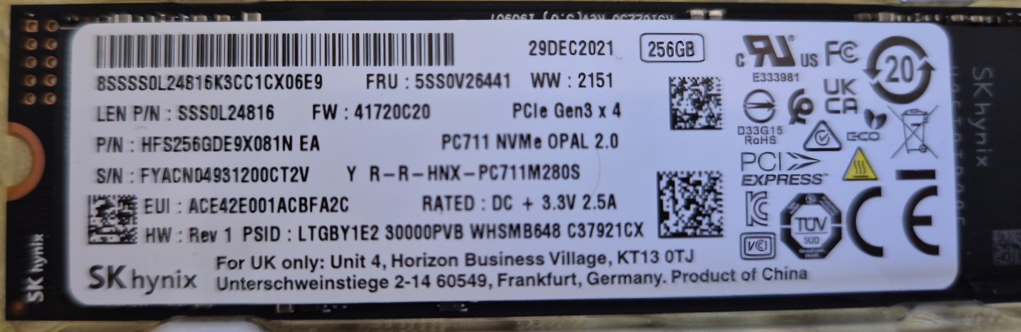 Eladó SK hynix 256GB SSD