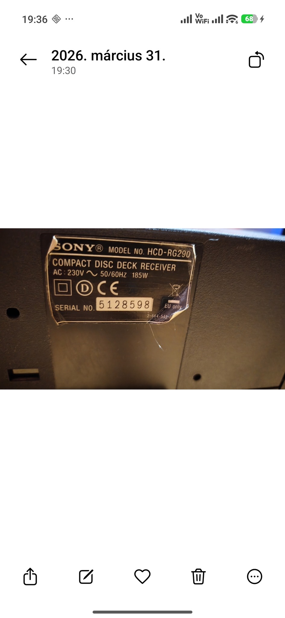 Eladó a képen látható SONY MINI HIFIhang Power Output (RMS)120Wx2 ,a vele látható esztétikai hibákkal de ez nem észrevehetők csak nagyon közelről,nagyon szépen és hangosan szól basszus tökéletes és a magas is .Van hozzá a képen is látható Borofone BC35 Wideway Bluetooth vevő fekete ,ami biztosítja a Bluetooth átvitelt bármely eszközről.Tudni kell hogy a rádió és a Bluetooth-átvitel működik csak, de a Bluetooth al mindent kipótolsz.Eredeti távirányítója is meg van hozzá szép állapotban.Márka Model:SONY :HCD-RG290. Helyszinen ki próbálható átvehető.