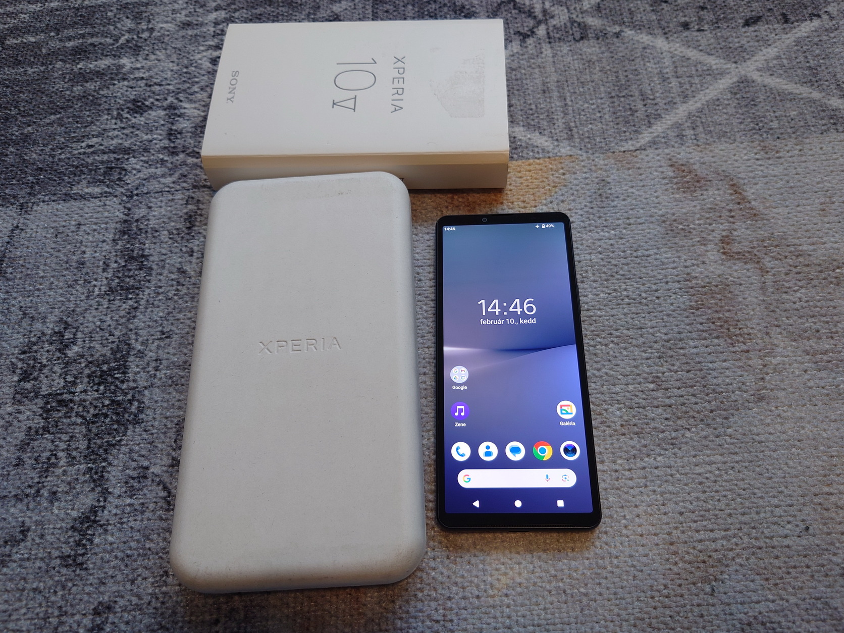 Sony Xperia 10 V XQ-DC54 eladó dobozában, gyári leírásaival.