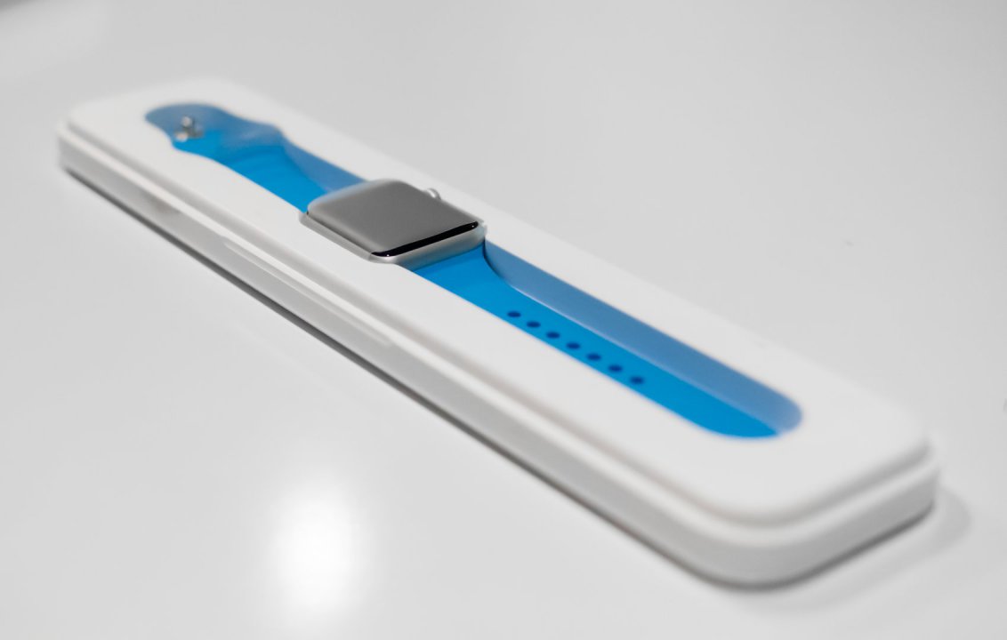 Eladó egy vadonatúj Apple Watch Sport 38mm Silver (Ezüst), Kék Sport banddel, minden tartozékával, 1 év Apple Garanciával!
