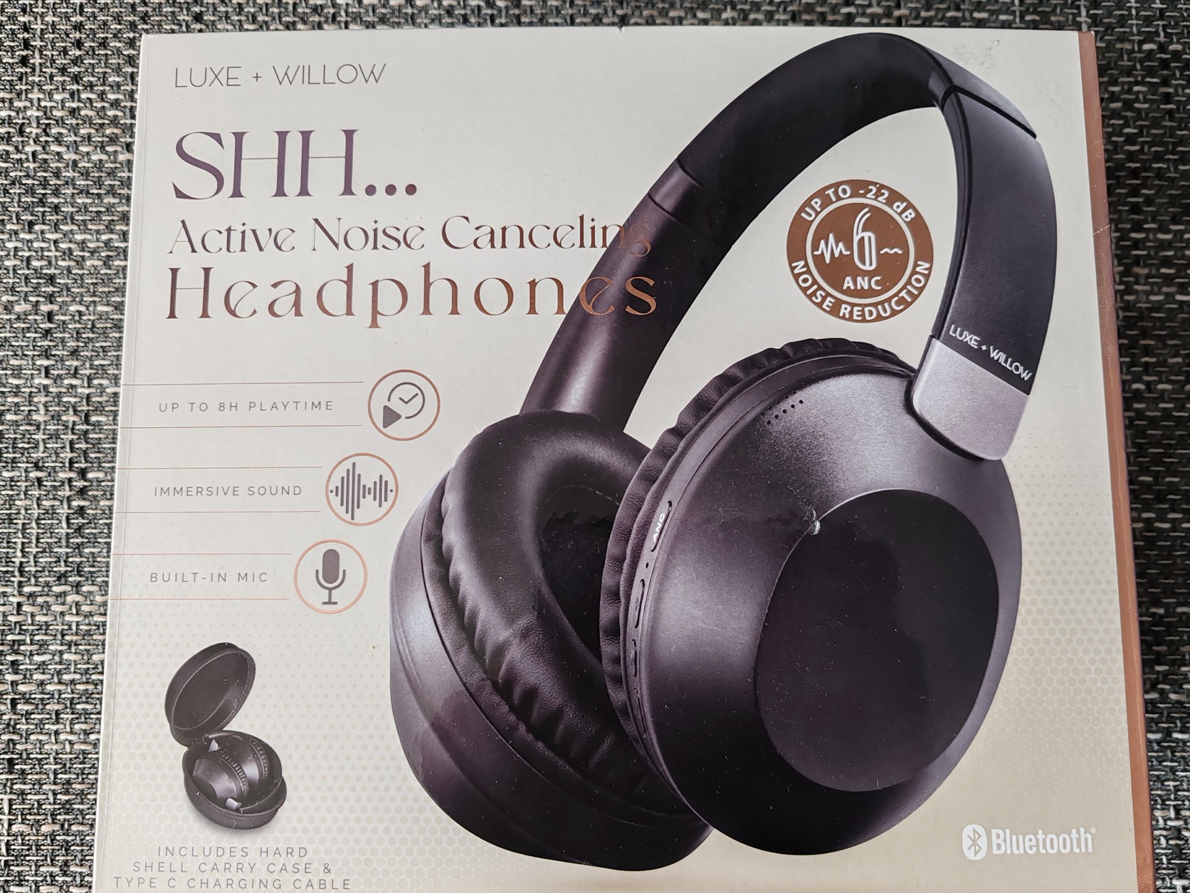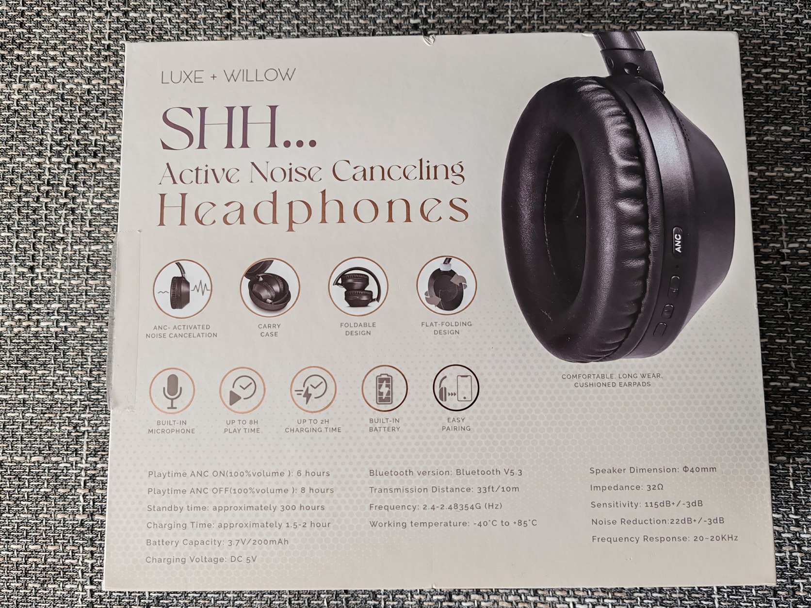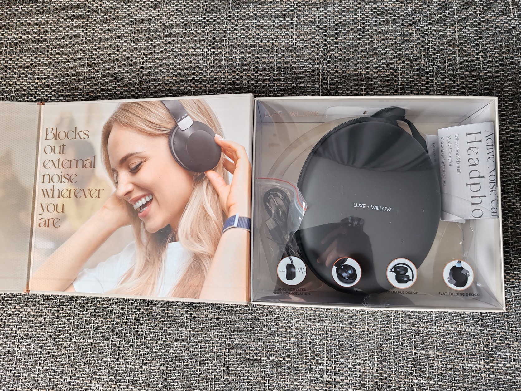 Eladó teljesen új, dobozában, Luxe + Willow aktív zajszűrős vezeték nélküli fejhallgató!