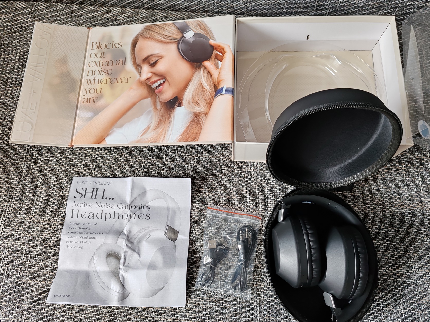 Eladó teljesen új, dobozában, Luxe + Willow aktív zajszűrős vezeték nélküli fejhallgató!