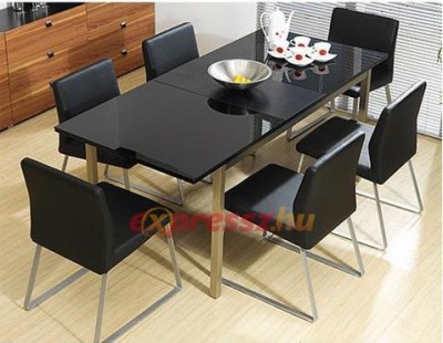 Olasz, modern stílusú, üveg-fém étkezőgarnitúra 6 bőr székkel! Új! Megtekinthető Sopronban, szállításban tudok segíteni!