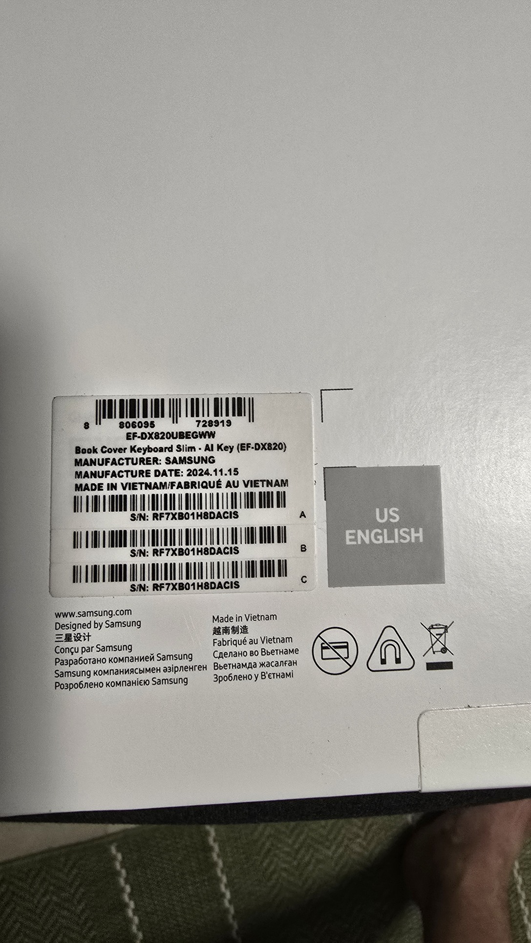 S9+ és Tab S9 FE+ tabletekkel is kompatibilis vékony billentyűzetes tok, AI billentyűvel, (EF-DX820UBG) 2 év garanciával.
