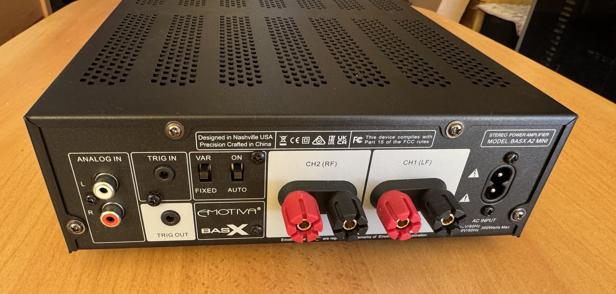 A BasX A2m egy kétcsatornás erősítő, amely 50 watt/csatorna teljesítményt nyújt 8 Ohmon, és 90 watt/csatorna teljesítményt 4 Ohmon, < 0,1%-os névleges THD+N értékkel és 112 dB-es A-súlyozott S/N aránnyal.