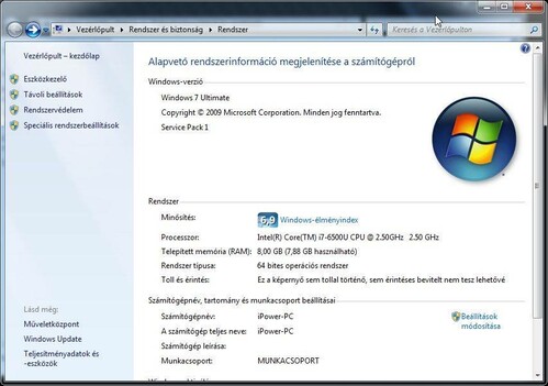 Operációs rendszer Win7 Ultimate SP1 (Office, st. igény szerint...)