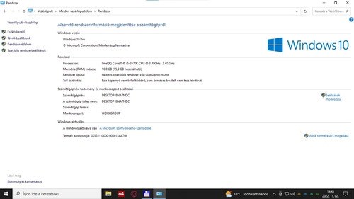 Friss Windows 10Pro, driver támogatás.