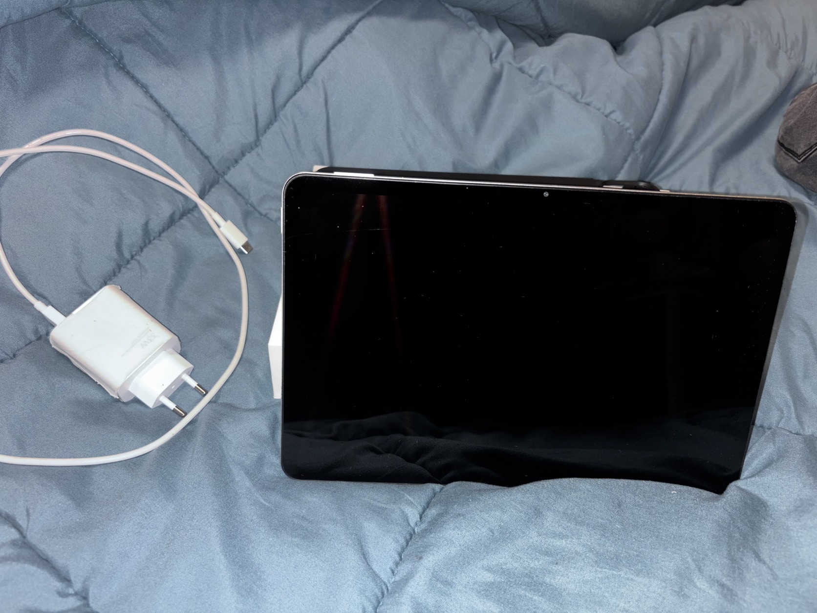 A kábel type-c véget a kutya egy picit megharapdálta. Csak fognyomok latszódnak rajta semmit nem befolyásol.