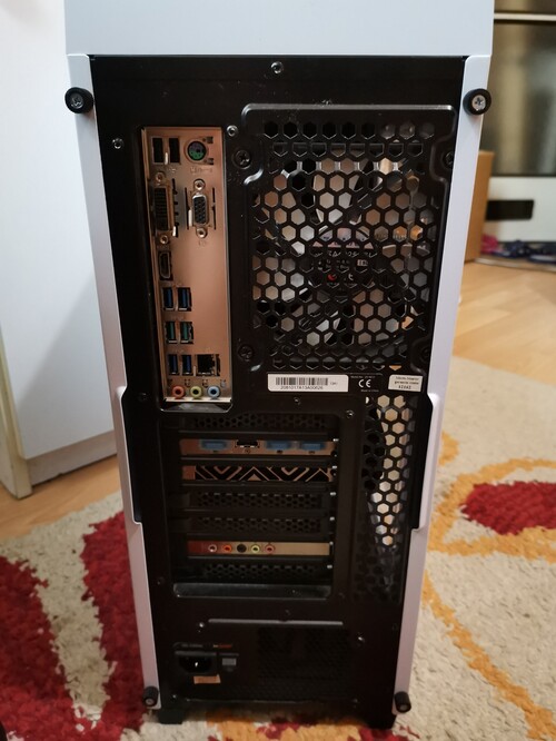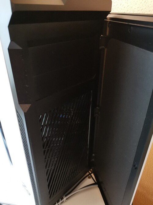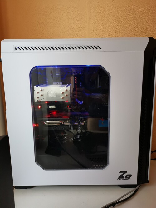 5 gyári ventilátorral rendelkezik, ebből pár kék színű lesdel világít, a házon a bekapcsoló gomb mellett reset, két 3,5 mm jack csatlakozó, és összesen 4, 2x USB 3.0 és 2x USB 2.0 csatlakozó található. A ház csavarjai megvannak, továbbá ki is lett takarítva az amúgy sem sok port gyűjtő kis kuckó, amennyire csak lehetett.