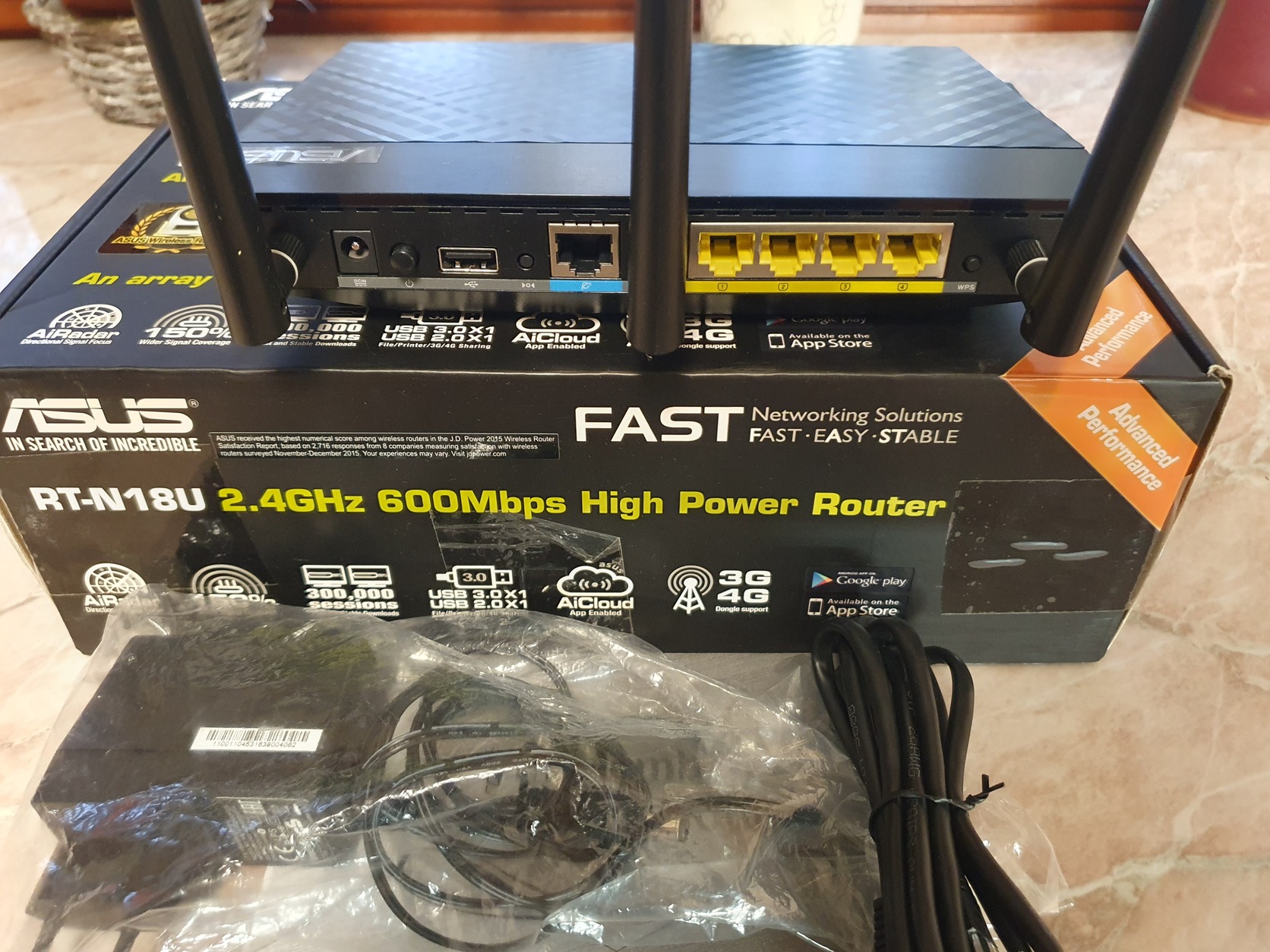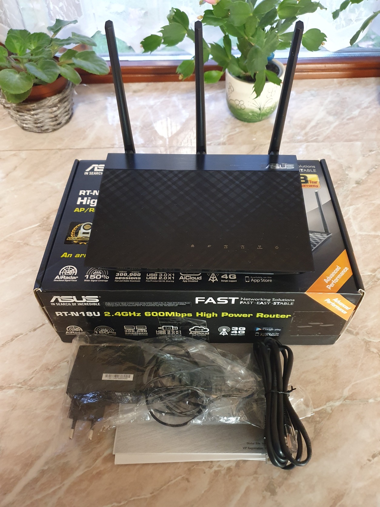 Eladó egy Asus RT-N18U router eredeti dobozában, minden tartozékával.