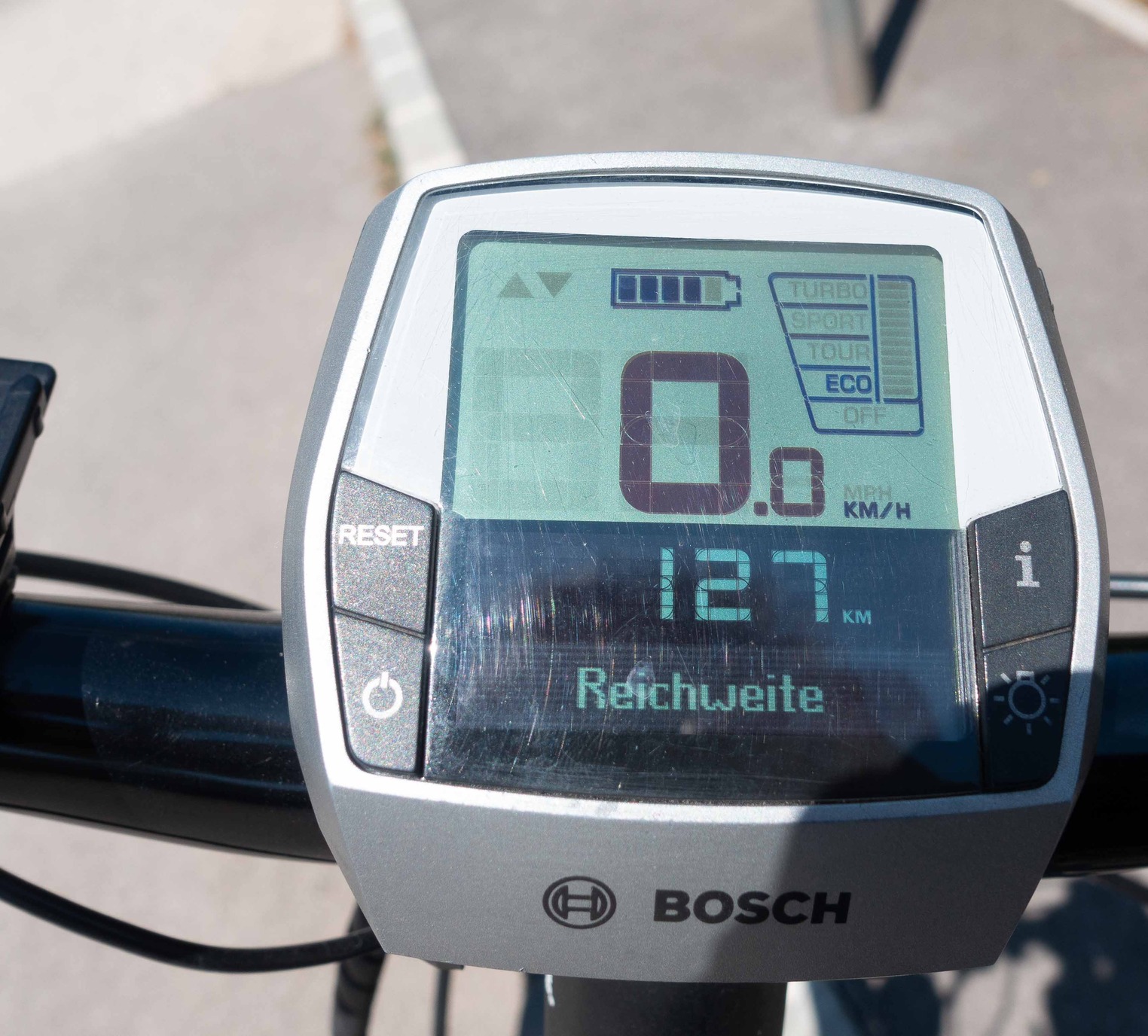 Nagyon szép, nagyon minőségi német e-bike Bosch motor, négy fokozat 400WH-ás akku (síkon 120-160 között elmegy Eco módban, a képen 30km után fotóztam, nem teli aksival volt még benne 127).
