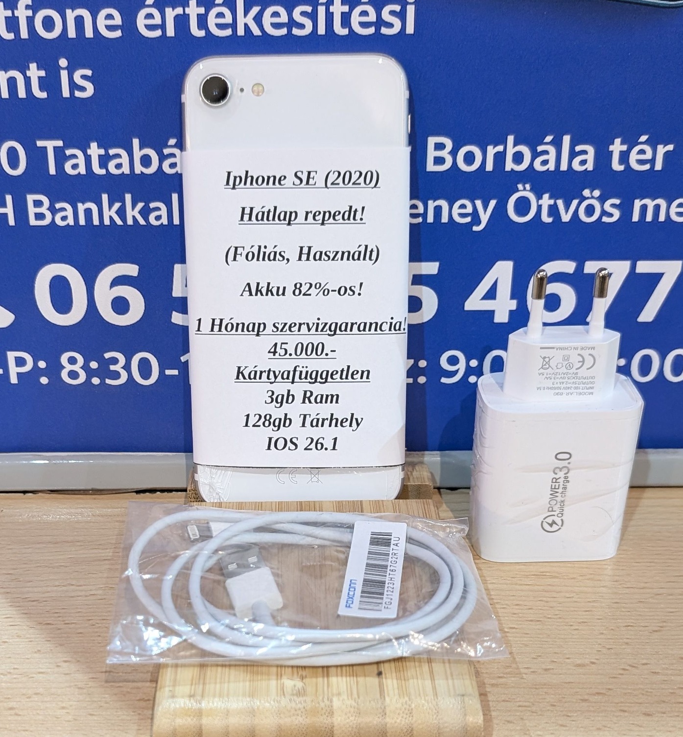 📌 Használt, Fehér, iPhone SE (2020) eladó, 128GB-os kivitel, már az IOS 26.1 rendszerrel!