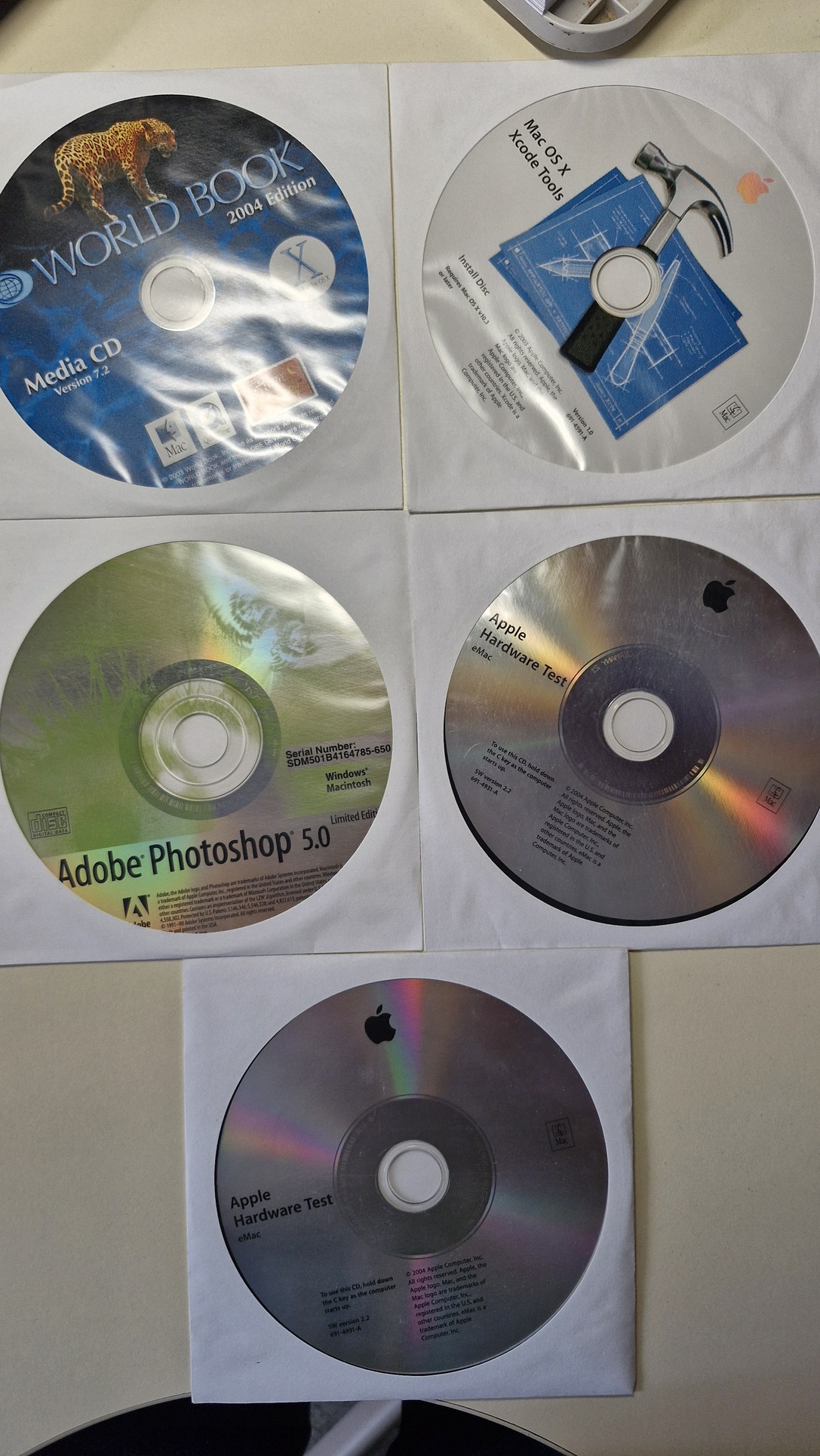 van még pár cd, pl. Mac OS X Xcode Tools, Adobe Photoshop 5.0, Apple Hardware Test