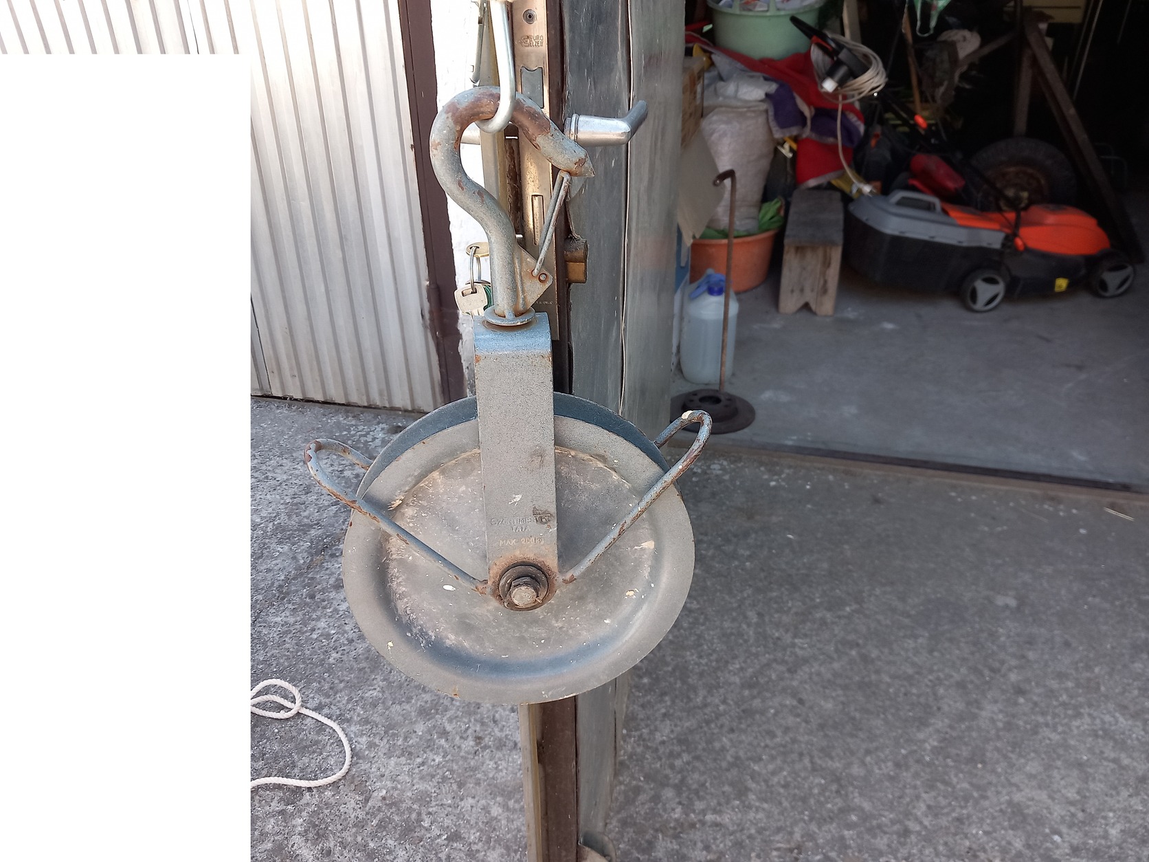 Eladó egy 26 cm átmérőjű kötélcsiga, mely 200 kg-ig terhelhető.